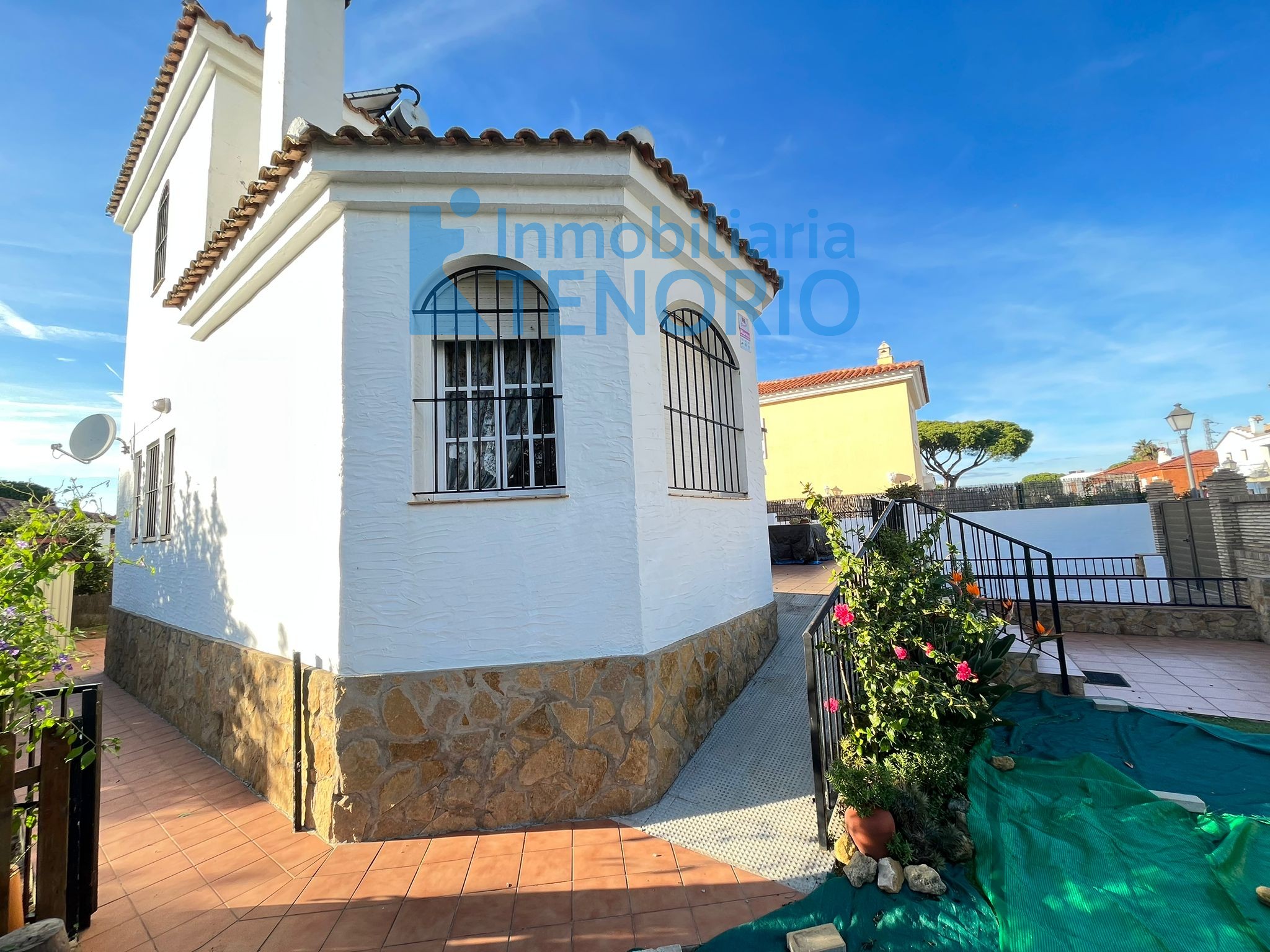Fantástico Chalet de 4 dormitorios en 1º linea de Playa, con jardines y parcela al rededor , zona de aparcamiento en superficie y garaje en sotano convertido en sala de juegos y almacén, con ventanas al exterior donde hay buena ventilación. La vivienda se distribuye de la siguiente manera: