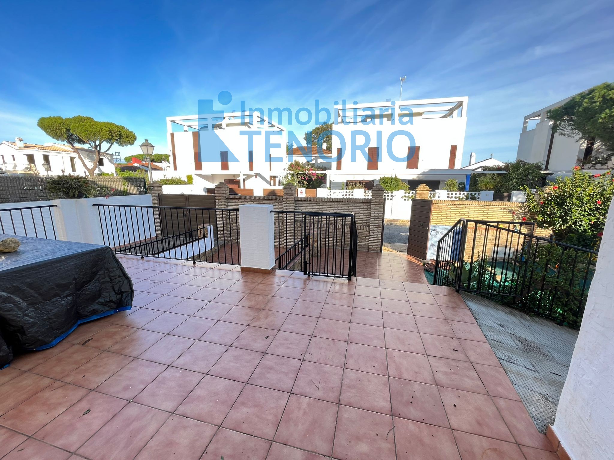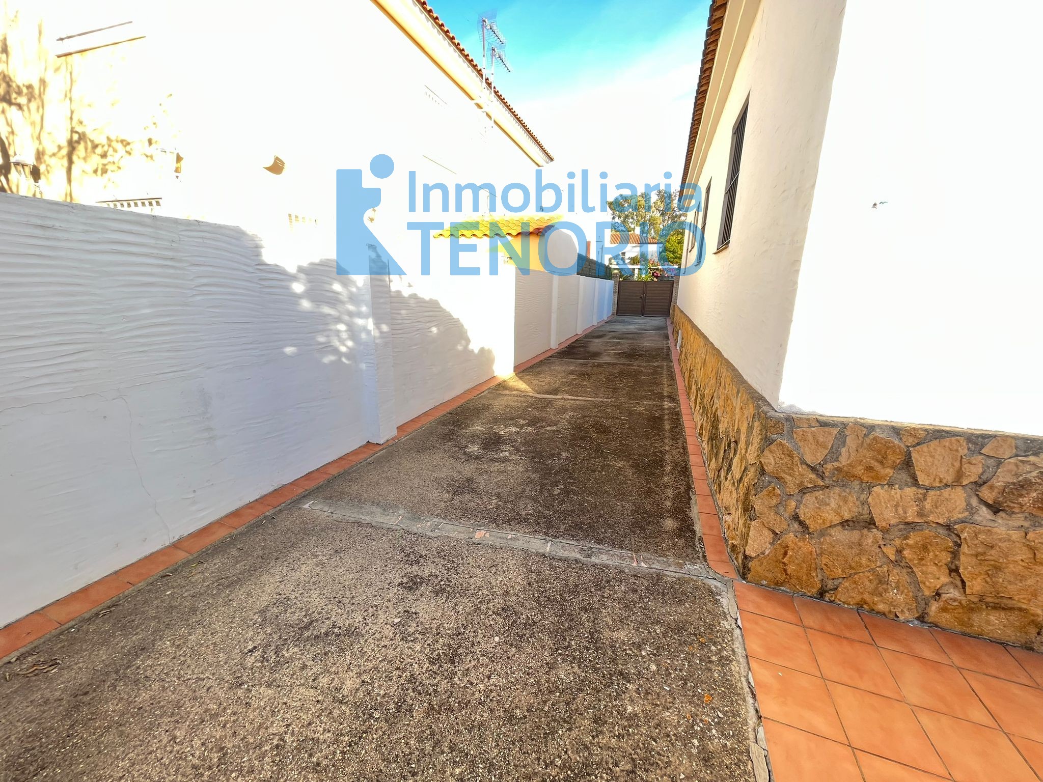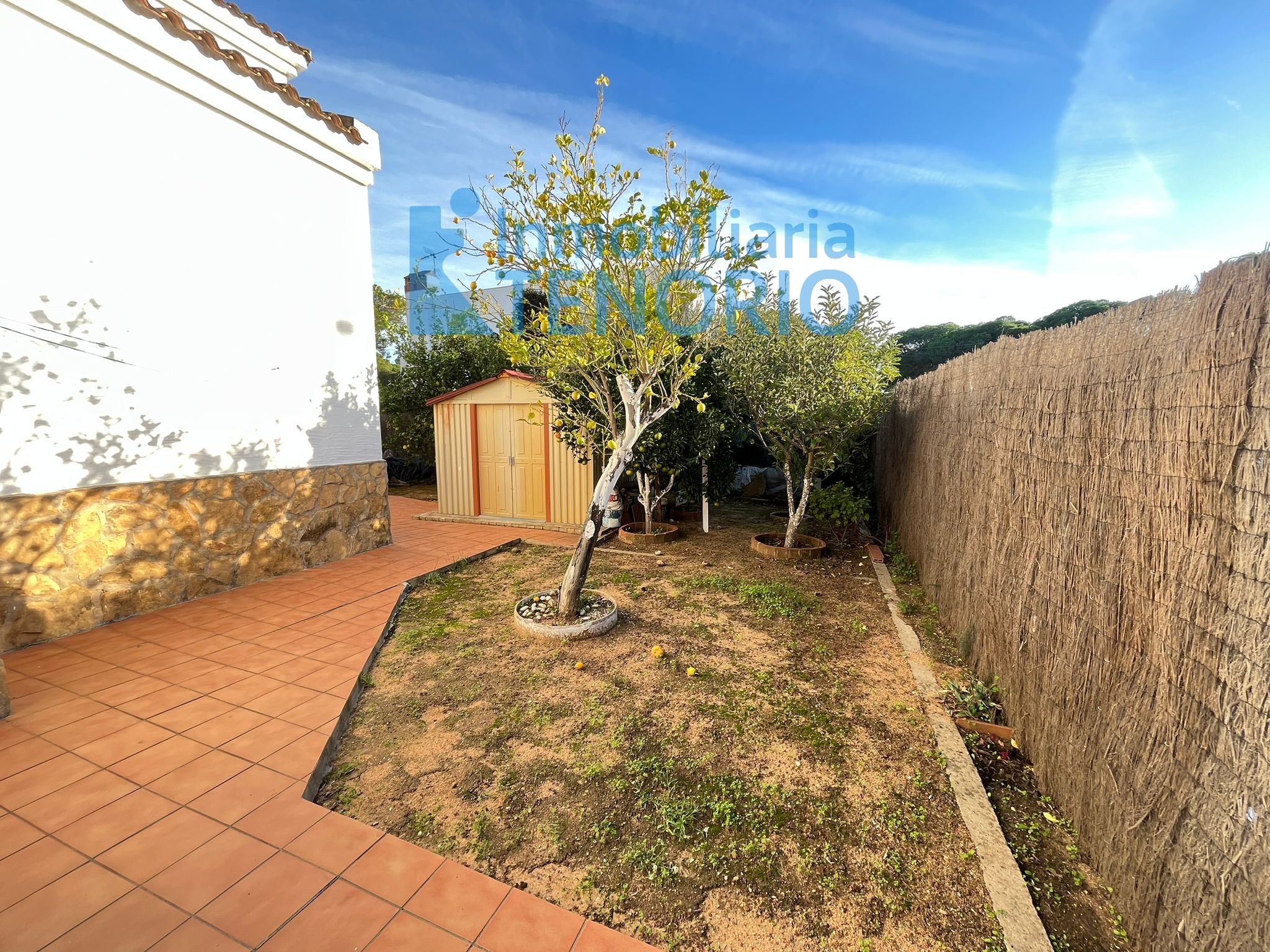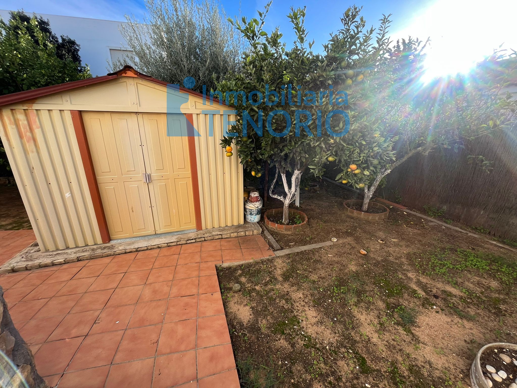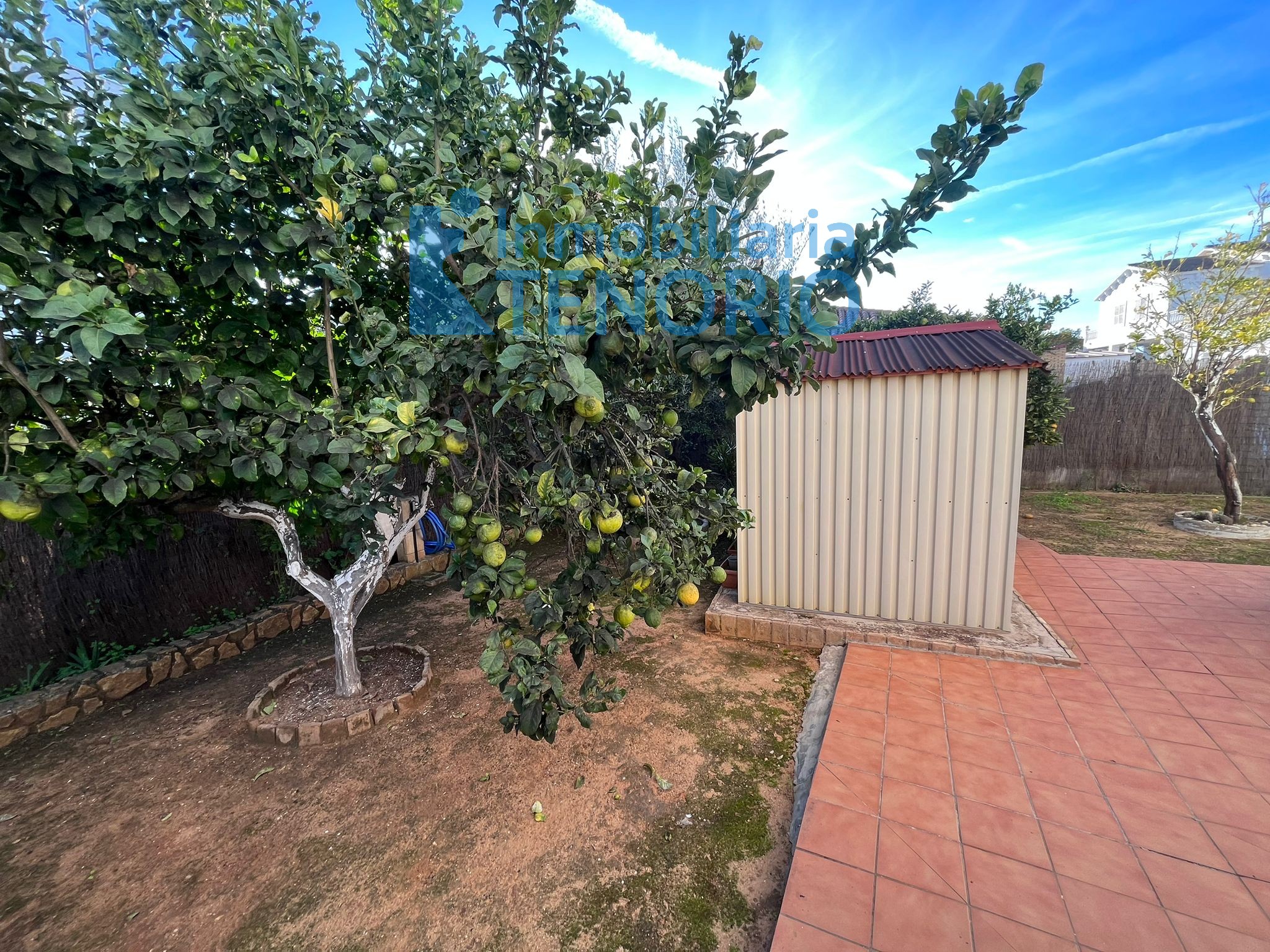 La fachada de la vivienda la acontece un gran porche con toldos amplios donde dar frescura en épocas estival, muy agradable par hacer la vida mas fácil, lava pies y ducha para cuando se viene de la playa , jardín con arriates y arboles frutales para tener una reserva de fruta ecológica y natural en casa, Cuarto de jardinera en simpática casita de PVC. todo coordinado para hacer la vida fácil a una gran familia que le guste vivir cerca de la naturaleza.